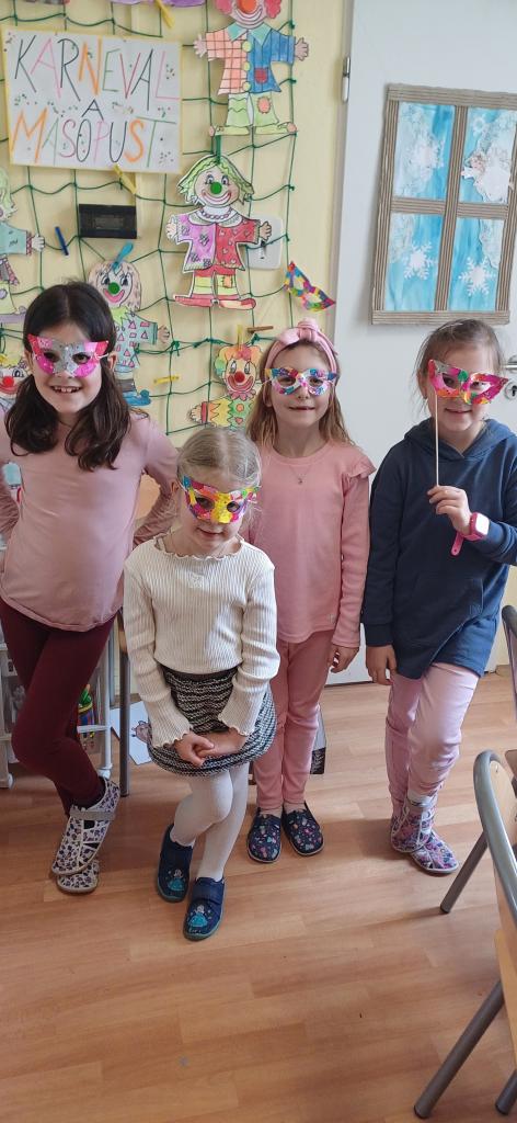 V měsíci únoru si děti zahrály masopustní stezku s otázkami, vyzkoušely si pracovní listy na téma Masopust, vytvořily srdíčko pro maminku a tatínka z luštěnin a kreslily a vyráběly různé karnevalové masky a klauny.