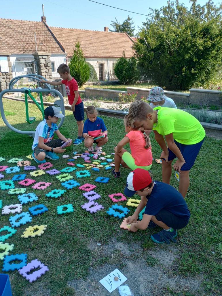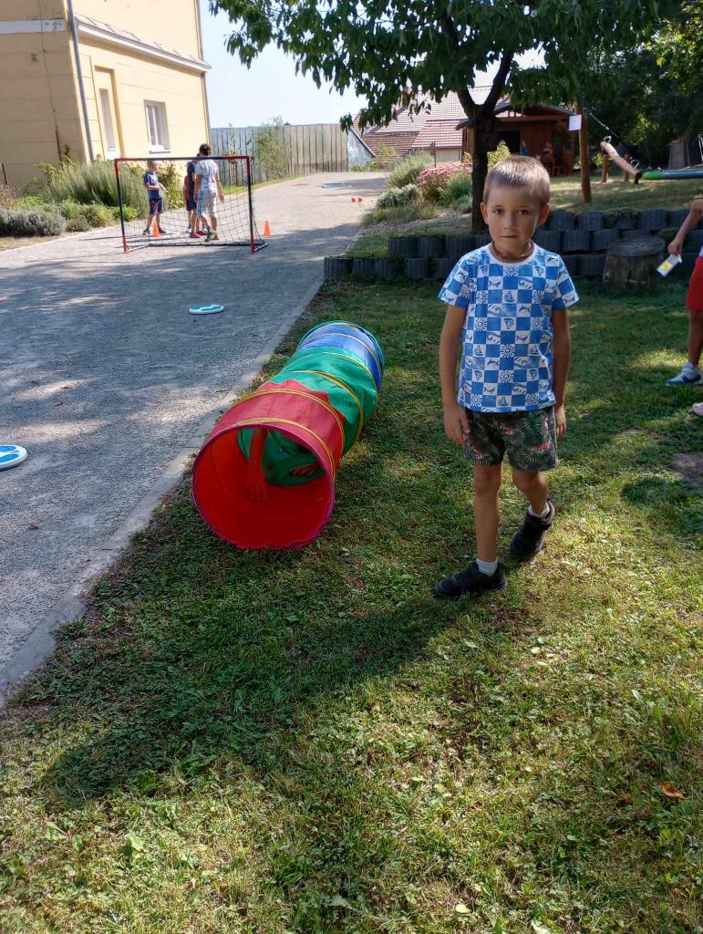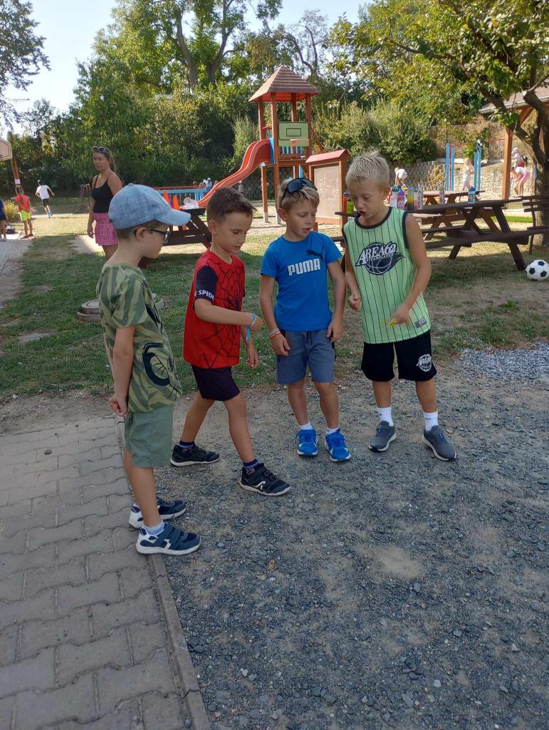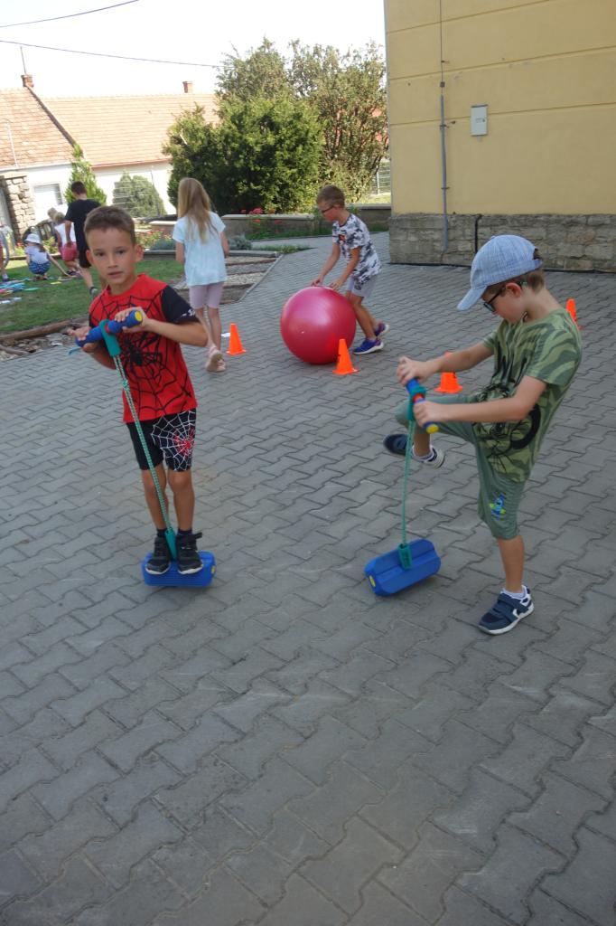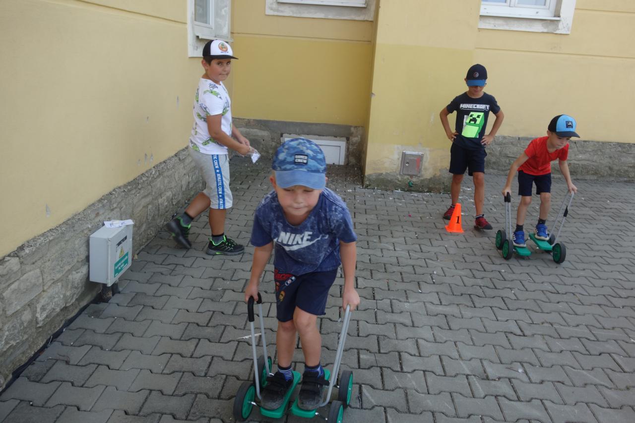 Žáci 4. ročníku si pro prvňáčky připravili jednoduché sportovní úkoly. Za jejich splnění získávali prvňáci písmenka, ze kterých za pomoci starších kamarádů poskládali svoje jméno.